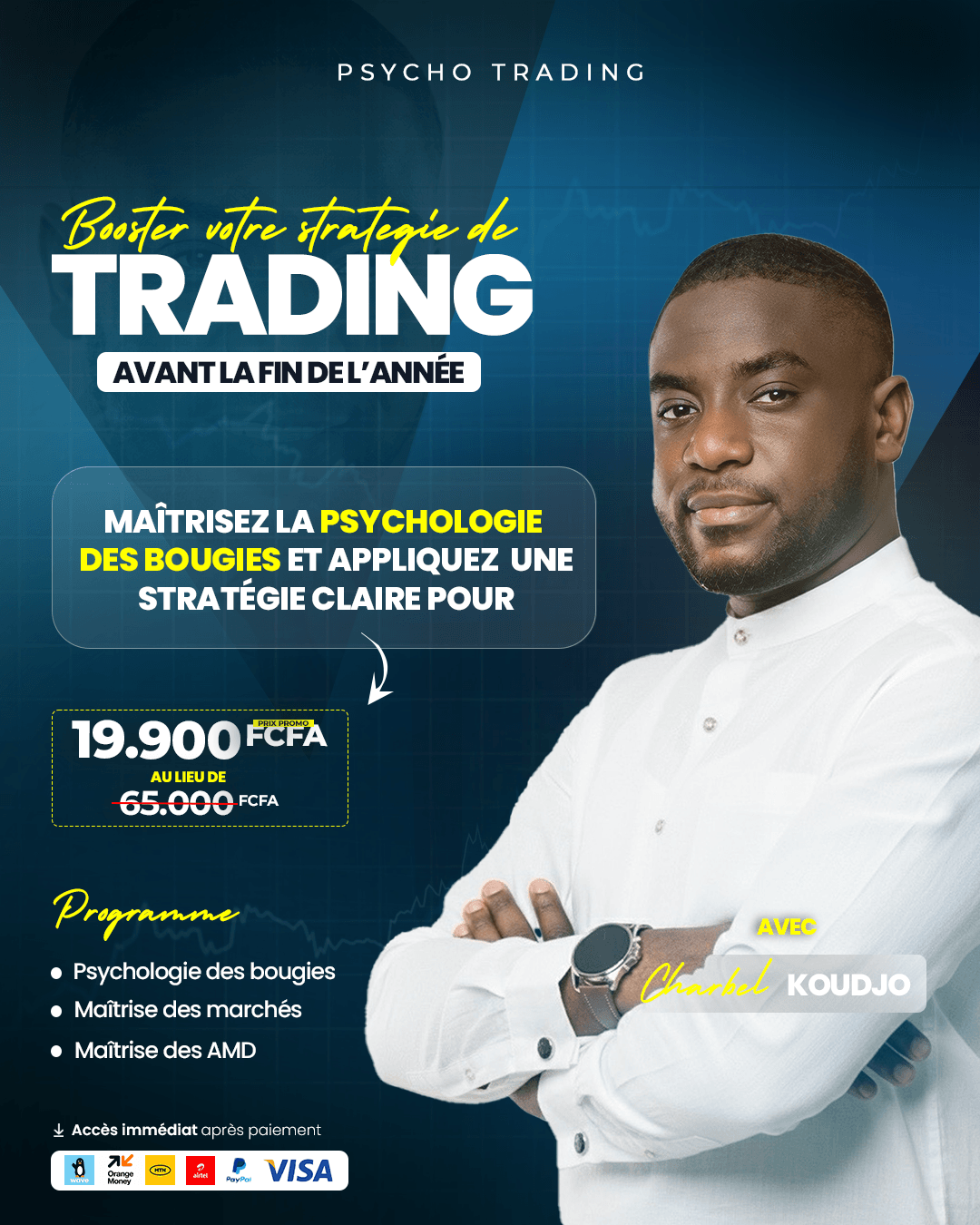 Une activité comme le Trading mérite d'avoir de belles pages épurées, alignées avec l'identité du formateur pour impacter encore plus ceux qui veulent apprendre cette compétence, c'est ce que j'ai eu l'honneur de mettre en place pour Charbel - Coach en Trading.